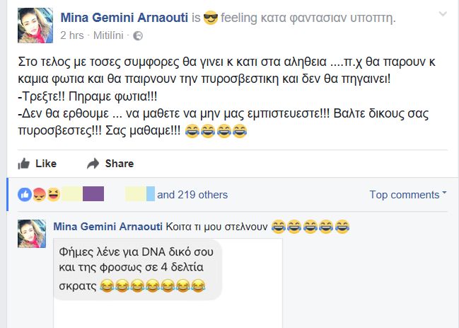 «Στο τέλος με τόσες συμφορές θα γίνει κ κάτι στα αλήθεια ….π.χ θα πάρουν κ καμία φωτιά και θα παίρνουν την πυροσβεστική και δεν θα πηγαίνει!