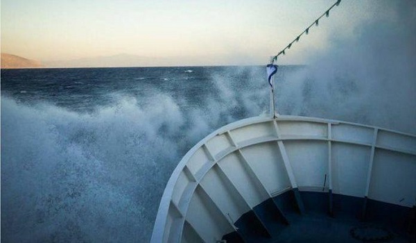 Μάχη με τα κύματα καταγράφηκε από το πλοίο Fast Ferries Andros, στο στενό Τήνου-Μυκόνου.