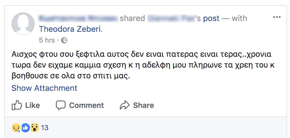 Σύμφωνα με όσα αναρτήθηκαν στον λογαριασμό που αποδίδεται στην αδερφή της εφοριακού, ο πατέρας των κοριτσιών δεν είχε σχέσεις με την οικογένεια και πως η 32χρονη πλήρωνε τα χρέη του.