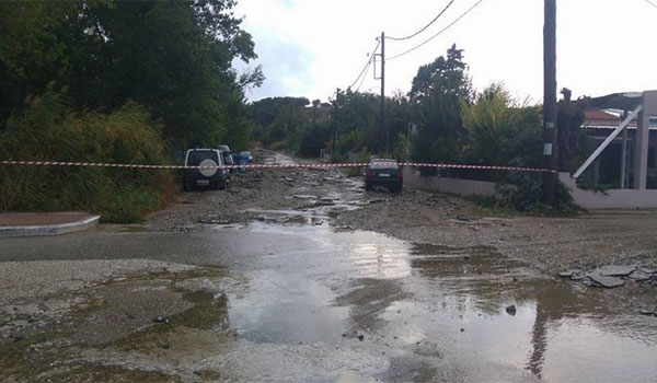 Το νησί έχει “κοπεί” στα δύο καθώς έχει διακοπεί η κυκλοφορία προς το Λάκκωμα, ενώ έχουν απομονωθεί τα χωριά Ξηροπόταμος, Λάκκωμα, Προφήτης Ηλίας.
