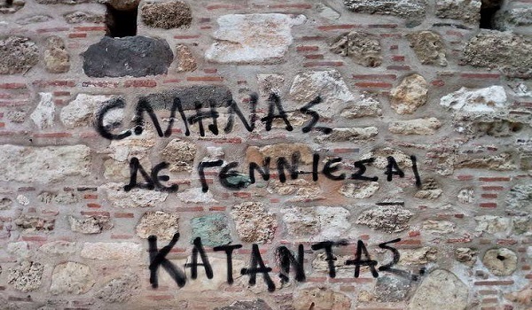 Συγκεκριμένα γράψανε «κοιμάσαι πατριώτης, ξυπνάς φασίστας» και «Έλληνας δεν γεννιέσαι καταντάς».