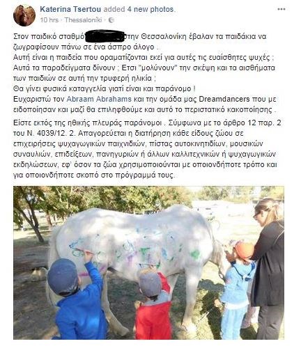 Θεσσαλονίκη: Θύελλα αντιδράσεων για την παιδική ζωγραφική πάνω σε άλογα