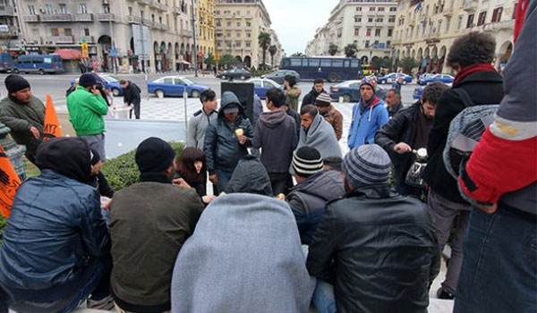 Στην πλατεία Αριστοτέλους, στην «καρδιά» της Θεσσαλονίκης, συγκεντρώθηκαν από το πρωί πρόσφυγες, ανταποκρινόμενοι σε κάλεσμα που φέρεται να απηύθυναν το προηγούμενο διάστημα άγνωστοι -μέσω των κοινωνικών μέσων δικτύωσης- με σκοπό να κινηθούν μαζικά προς τα βόρεια σύνορα της χώρας.