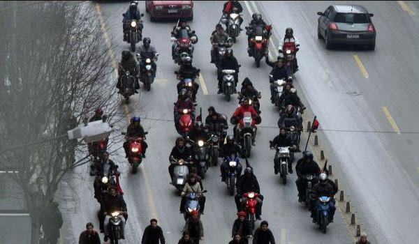 Κατά τη διάρκεια της μηχανοκίνητης πορείας διακόπηκε η κυκλοφορία στο κέντρο της πόλης.