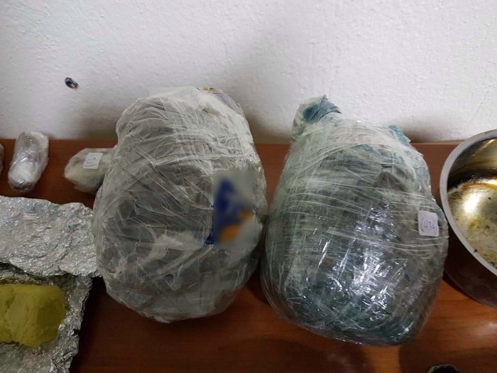Σκεύη με υπολείμματα χασισελαίου ,