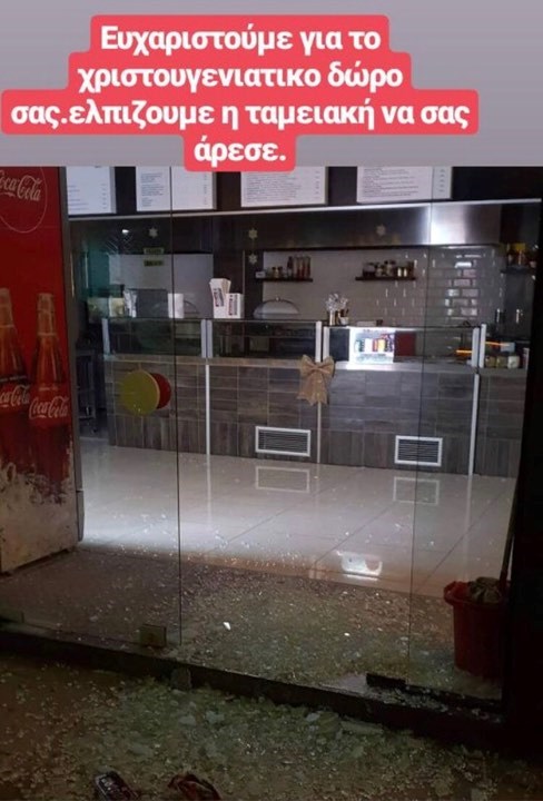 Μέσα από το Instagram του μετέφερε την εικόνα της βιτρίνας του καταστήματός του με τη τζαμαρία να έχει γίνει θρύψαλα.