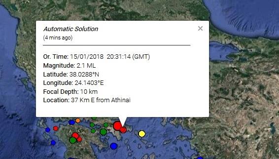 Ισχυρός σεισμός χτύπησε την Αττική το βράδυ της Δευτέρας, 15.01.2018. Σημειώθηκε στις 22:24 το βράδυ και έγινε αισθητός σε πολλές πειροχές της Αθήνας.