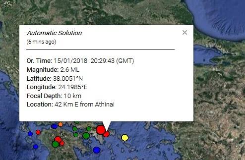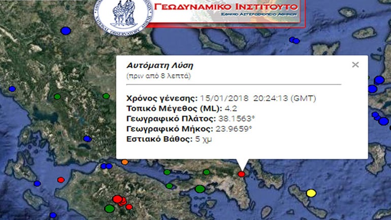 Σύμφωνα με το Γεωδυναμικό Ινστιτούτο η σεισμική δόνηση ήταν 4,2 Ρίχτερ με το επίκεντρο 27 χιλιόμετρα βορειοανατολικά της Αθήνας.