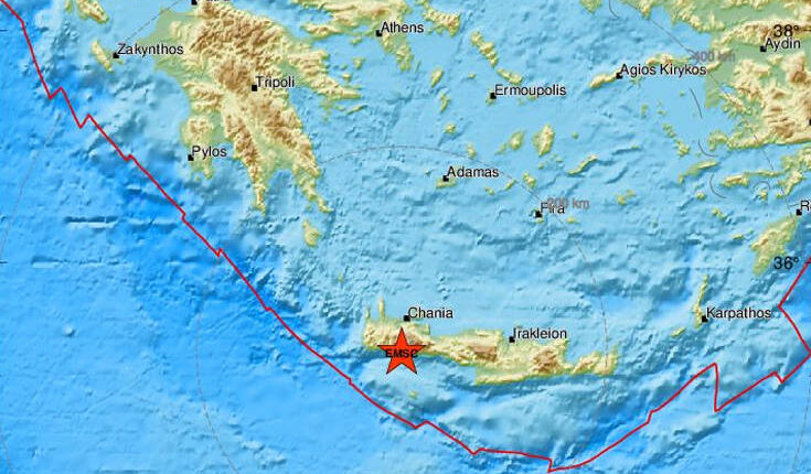 Σύμφωνα με το Ευρωμεσογειακό Ινστιτούτο ο σεισμός σημειώθηκε 33 χλμ νότια των Χανίων και 24 χλμ δυτικά της Παλαιόχωρας.