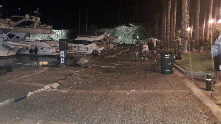 Κινδύνευσαν σκάφη από παλίρροια και άμπωτη στο λιμάνι της Κω – Σοβαρές ρηγματώσεις στην προβλήτα όλου του εσωτερικού λιμανιού και πίσω από τη ΔΕΗ -Καταπλακώθηκαν τουλάχιστον 3 ΙΧ στην περιοχή πίσω από τη ΔΕΗ όπου κατέρρευσε παλιά πέτρινη αποθήκη.Πυροσβεστική, ΕΚΑΒ και πολίτες ψάχνουν στα συντρίμμια για εγκλωβισμένους και τραυματίες. Προβλήματα ηλεκτροδότησης αρχίζουν να αποκαθίστανται ενώ όλο το νησί βρίσκεται στο πόδι.
