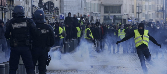 Οι διαδηλωτές κατήγγειλαν ότι οι κατασταλτικές δυνάμεις έχουν προχωρήσει σε περιστατικά ωμής βίας. Στο βίντεο φαίνονται ότι τα γαλλικά ΜΑΤ κάνουν χρήση χημικών ενώ παράλληλα πυροβολούν με πλαστικές σφαίρες.