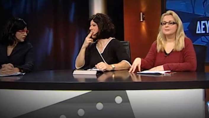 Ιδιαίτερο ενδιαφέρον ωστόσο είχε το σκετσάκι που αφιέρωσε στην εκπομπή της ΕΡΤ «Δεύτερη Ματιά» και την συνάδελφό του, Κατερίνα Ακριβοπούλου. «Καλησπέρα σας. Έχουν περάσει 13 δευτερόλεπτα χωρίς να πω κουβέντα για το ΣΥΡΙΖΑ και αυτό είναι μία αποστομωτική απάντηση σε όσους λένε ότι προβάλω μόνο το κυβερνητικό έργο και ότι δεν έχουν φωνή τα υπόλοιπα ανύπαρκτα κόμματα της πλάκας». Με την «Έλλη Τριανταφύλλου» να απαντάει «ε, όχι και ανύπαρκτα βρε Κατερίνα μου. 17 μονάδες σας ρίχνουν στις δημοσκοπήσεις».