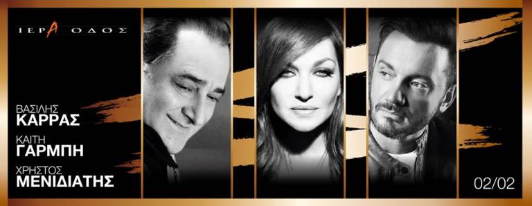 Δυνατά… στην Ιερά Οδό, έρχονται από την Παρασκευή, 2 Φεβρουαρίου, ο Βασίλης Καρράς, η Καίτη Γαρμπή και ο Χρήστος Μενιδιάτης, στην πιο ελκυστική μουσική σύμπραξη της νυχτερινής Αθήνας.