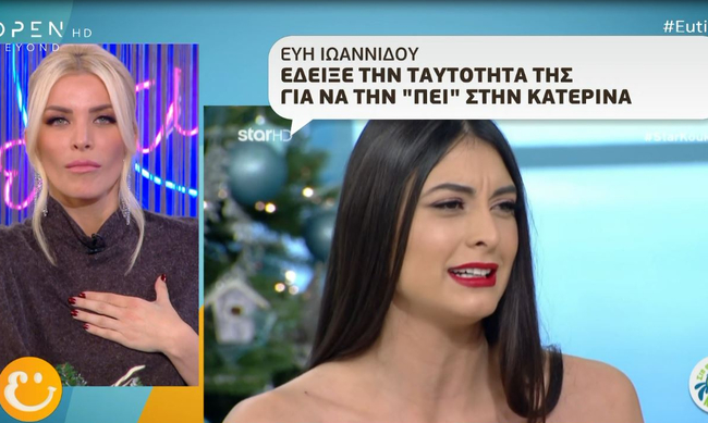 Η Εύη ανέφερε πως η παρουσιάστρια την κατηγόρησε ότι λέει ψέματα για την ηλικία της. Έτσι, το μοντέλο έδειξε on camera την ταυτότητά της και να έδωσε τέλος στις φήμες. «Θέλω να πω στην Κατερίνα Καινούργιου ότι είμαι 14-11-1995, είμαι 23χρονών και δε λέω ψέματα. Αυτό γιατί πήρε μεγάλη έκταση και θέλω να κλείσει αυτό», είπε η Εύη Ιωαννίδου.