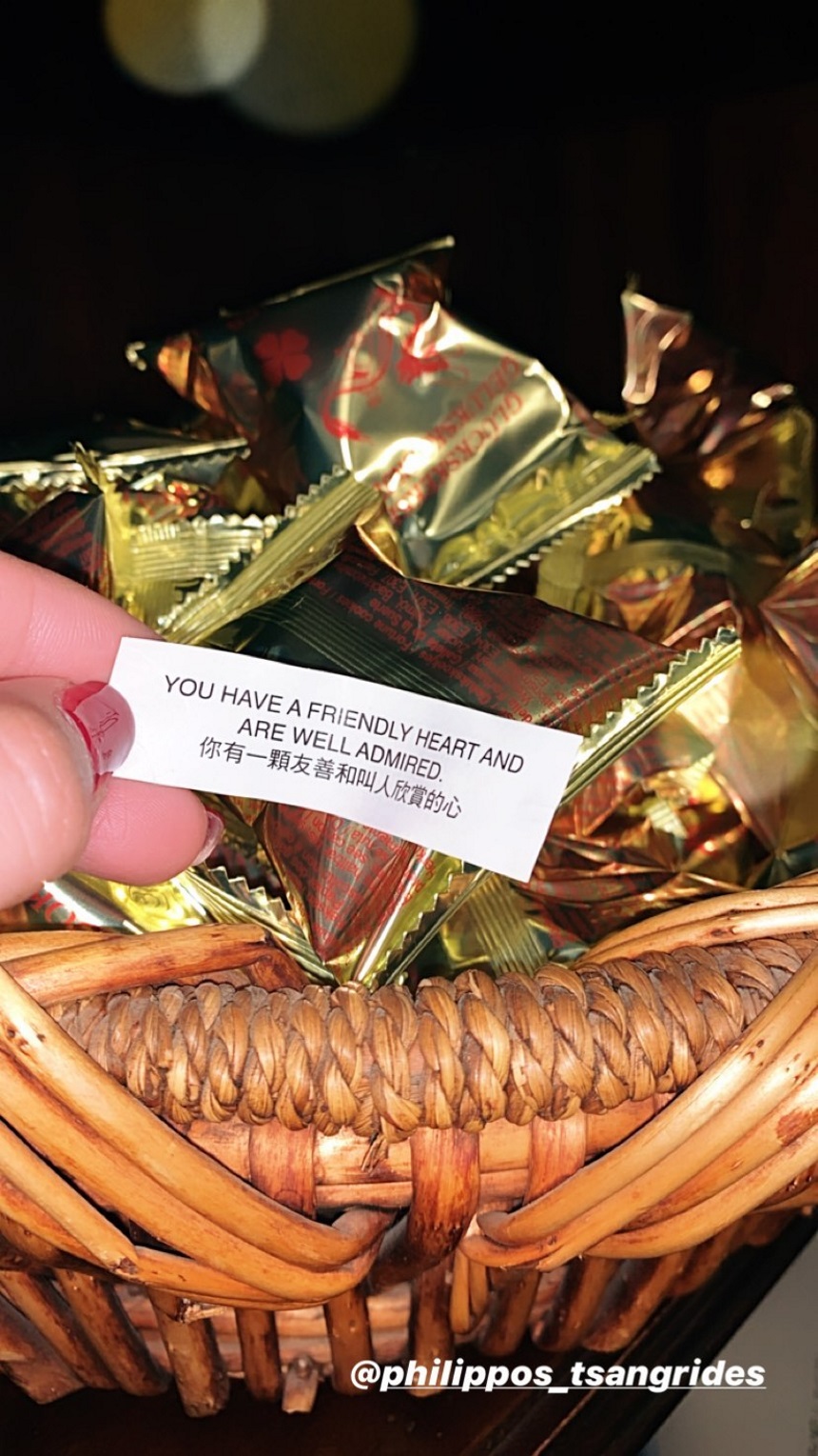 Η Καινούργιου ανέβασε στο Instagram στόρις, από το εστιατόριο που πραγματοποιήθηκε το δείπνο, και ευχήθηκε «Χρόνια πολλά» στον αγαπημένο της.