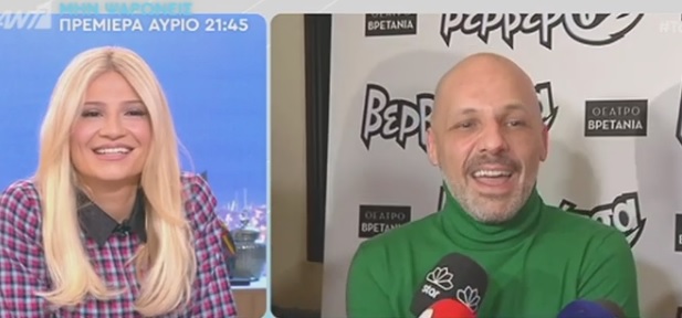 Μετά το τέλος της παράστασης ο Νίκος Μουτσινάς και η Ματίνα Νικολάου η οποία υποδύεται τη Ριρί στο έργο, μίλησαν στις κάμερες. «Τι έχει το πρόσωπό σου;», ρώτησε μια δημοσιογράφος τον Νίκο Μουτσινά ο οποίος ήταν γεμάτος κοκκινίλες.