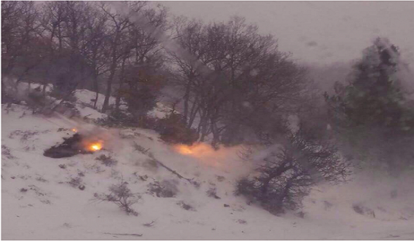Η πυρκαγιά προκλήθηκε σε κολώνα μεταφοράς ηλεκτρικού ρεύματος και δεν άργησε να δημιουργήσει μια μικρή εστία στη χιονισμένη μεν, αλλά δασώδη περιοχή.