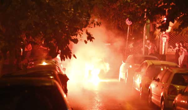 Κουκουλοφόροι εναντίον ΜΑΤ στα Εξάρχεια. Έπεσαν μολότοφ