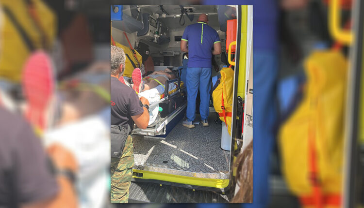 Οι πυροσβέστες την έβαλαν σε φορείο και την μετέφεραν σε ασφαλές μέρος όπου περίμενε ασθενοφόρο του ΕΚΑΒ.
