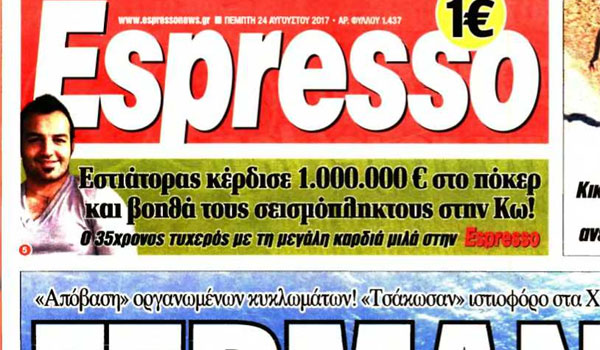 Κως: Κέρδισε 1.000.000 ευρώ στο πόκερ και βοηθά τους σεισμόπληκτους