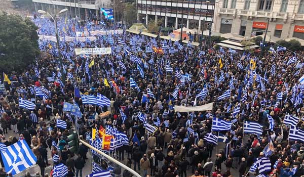 Εκατοντάδες χιλιάδες κόσμου από την Ελλάδα και το εξωτερικό έχουν κατακλύσει στην πλατεία Συντάγματος στην Αθήνα, για να πουν ένα ηχηρό όχι στη Συμφωνία μεταξύ Ελλάδας και Σκοπίων.