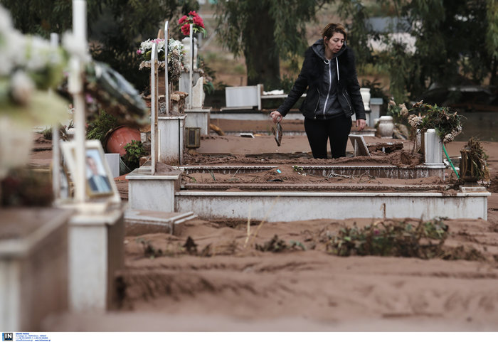 Την μακάβρια αυτή διαπίστωση επιβεβαιώνουν και οι φωτογραφίες που έχουν δει το φως της δημοσιότητας από το κοιμητήριο της περιοχής όπου φερτά υλικά έχουν κατακλύσει το χώρο ενώ πολλά μνήματα έχουν καταστραφεί από τη δύναμη του νερού.