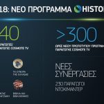 Συνολικά, το 2018 το COSMOTE HISTORY HD θα φιλοξενήσει πάνω από 300 ώρες πρωτότυπου τηλεοπτικού προγράμματος, σε παραγωγή ή συμπαραγωγή COSMOTE TV, που καλύπτουν το 25% του νέου προγράμματος του καναλιού.