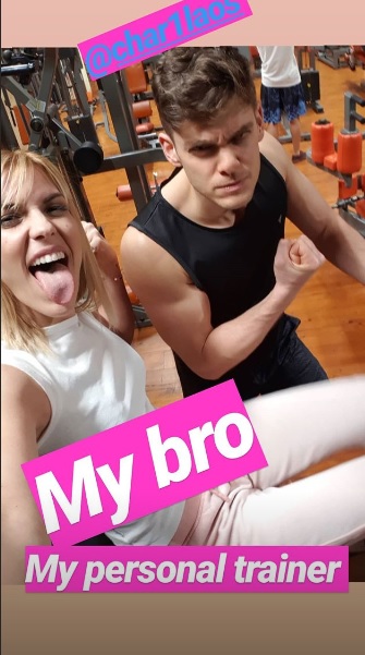 Αρχικά η Μαντώ ανήρτησε μια φωτογραφία με τον αδελφό της ενώ στη συνέχεια ανήρτησε ένα boomerang που κάνει γυμναστική και κρατάει το κινητό της και φαίνεται χαρούμενη.