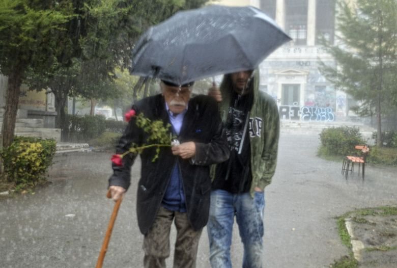 Μανώλης Γλέζος: Υπό καταρρακτώδη βροχή στο Πολυτεχνείο