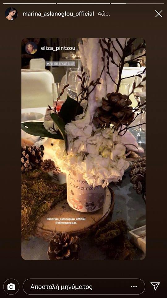 Χθες το απόγευμα, η Μαρίνα Ασλάνογλου και ο Δημοσθένης Πέππας βάφτισαν τον αγαπημένο τους γιο, με νονούς την αδερφή του Δημοσθένη και τον δημοσιογράφο, Μάνο Νιφλή, σύζυγο της Ελισάβετ Μουτάφη. Και το όνομα αυτού; Κωνσταντίνος!