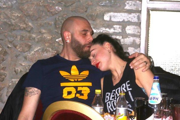 Ο φωτογραφικός φακός «τσάκωσε» τον Μιχάλη να αγκαλιάζει και να φιλάει τρυφερά την Ήβη, ενώ δεν έλειψε και ένα «καυτό» φιλί στο στόμα!