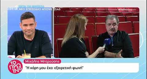 Ο Μιχάλης Μητρούσης μίλησε όμως και για την κόρη του Ερασμία η οποία συμμετείχε στο The Voice χωρίς ωστόσο να καταφέρει να κερδίσει τους κριτές. «Η κόρη μου δεν έχει καλή φωνή, έχει εξαιρετική φωνή, βέβαια πατέρας είμαι τι θα πω. Έκανε καλά και πήγε στο Voice. Διάλεξε ένα εξαιρετικό τραγούδι του Κραουνάκη που όμως δεν ταιριάζει στο ύφος του show. Η επιλογή ήταν δική της, εμένα μου άρεσε. Μέχρι τελευταία στιγμή δεν ήξερα τι θα κάνει, το έμαθα στο παρά πέντε και εννοείται ήμουν μαζί της», είπε.