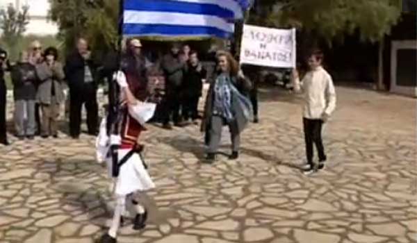 Ρίγη συγκίνησης προκάλεσε ο μοναχικός σημαιοφόρος στους Αρκιούς.