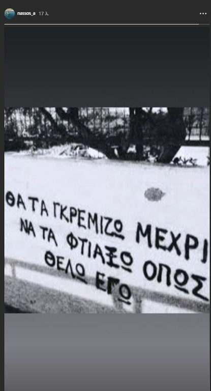Μάλιστα, σήμερα είναι η ονομαστική εορτή του 26χρονου επιχειρηματία ο οποίς και πόσταρε μία φωτογραφία που αφήνει πολλά υπονοούμενα στη σελίδα του στο instagram, η οποία και έγραφε: «Θα τα γκρεμίζω μέχρι να τα φτιάξω όπως θέλω εγώ».