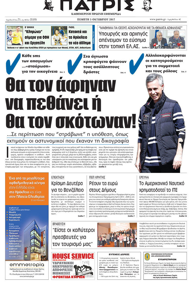 Απαγωγή Λεμπιδάκη : Αν “στράβωνε” κάτι θα τον σκότωναν ή θα τον άφηναν να πεθάνει – Τι εκτιμούν οι αστυνομικοί που χειρίστηκαν την υπόθεση – Η εφημερίδα ΠΑΤΡΙΣ αποκαλύπτει το επίσημο διαβιβαστικό της Αστυνομίας