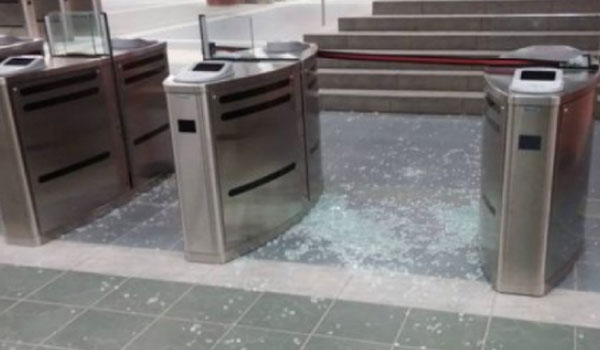 Ομάδα 15 νεαρών κυριολεκτικά διέλυσαν 6 ακυρωτικά μηχανήματα εισιτηρίων νέου τύπου και δύο αυτόματους πωλητές εισιτηρίων και στη συνέχεια διέφυγαν τρέχοντας.