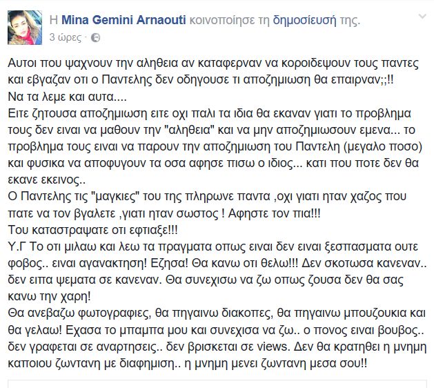 ”Αυτοι που ψαχνουν την αληθεια αν καταφερναν να κοροιδεψουν τους παντες και εβγαζαν οτι ο Παντελης δεν οδηγουσε τι αποζημιωση θα επαιρναν;;!!