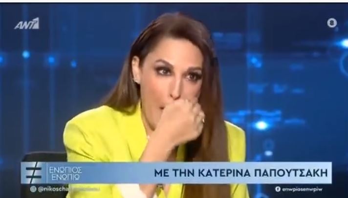 Ξέσπασε σε δάκρυα η Κατερίνα Παπουτσάκη στο Ενώπιος Ενωπίω, μετά την προβολή αποσπάσματος από γυρίσματα με την ίδια και τον Θανάση Βέγγο.