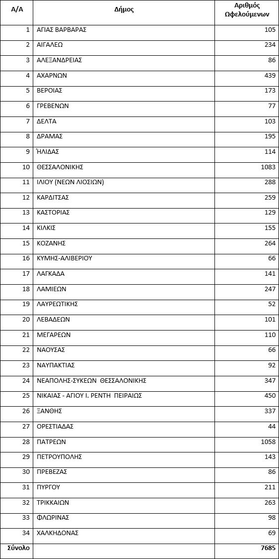 • Ωφελούμενοι του Κοινωνικού Εισοδήματος Αλληλεγγύης
