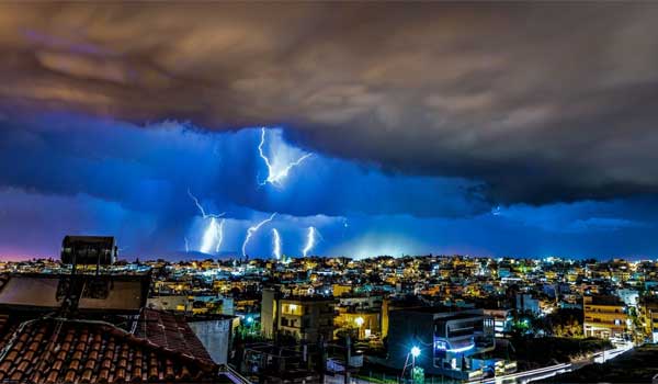 Οι κεραυνοί έκαναν τη νύχτα μέρα στο Ηράκλειο