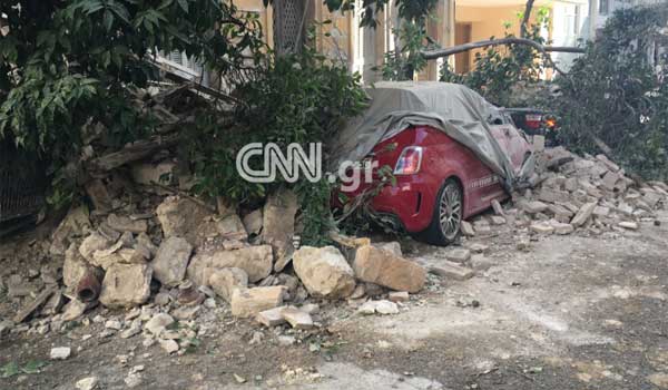 Όπως φαίνεται και στις φωτογραφίες από το κτίριο έχει υποστεί μεγάλες ζημιές ενώ αυτοκίνητα καταπλακώθηκαν από τα μπάζα.