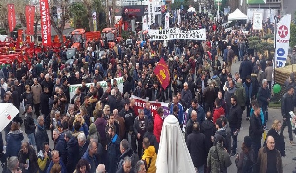 Οι αγρότες μπήκαν μέσα στην Έκθεση φωνάζοντας συνθήματα, ενώ σε λίγη ώρα θα πραγματοποιήσουν ομιλίες στο χώρο της Agrotica.