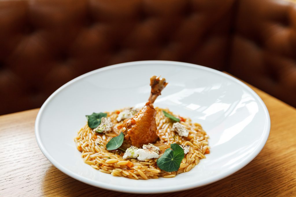 Οσοµπούκο κοτόπουλο µε κριθαράκι Ζέας & χλωρό ανθότυρο