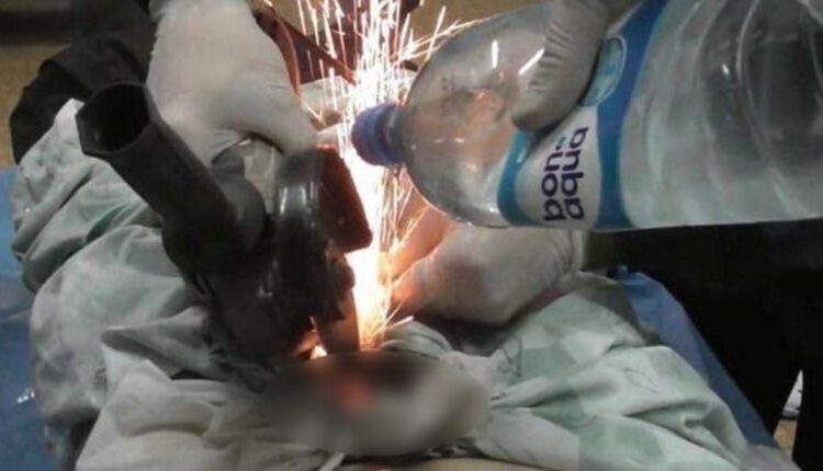 Ο άντρας ένιωθε έναν μεγάλο πόνο και ξύπνησε για να δει τι είχε συμβεί. Αμέσως άρχισε να φωνάζει και τότε εκείνη του αποκάλυψε τι έκανε. Στην αρχή προσπάθησε να το βγάλει μόνος του, αλλά θα τραυμάτιζε το πέος του. Κάλεσε λοιπόν το ασθενοφόρο και αφού του έκαναν αναισθησία, του αφαίρεσαν με τροχό το παξιμάδι. Πρώτα το έκοψαν στα δύο και στη συνέχεια το αφαίρεσαν προσεκτικά, ρίχνοντας νερό στο μόριο, ώστε να μην δημιουργηθεί ανάφλεξη από την τριβή.