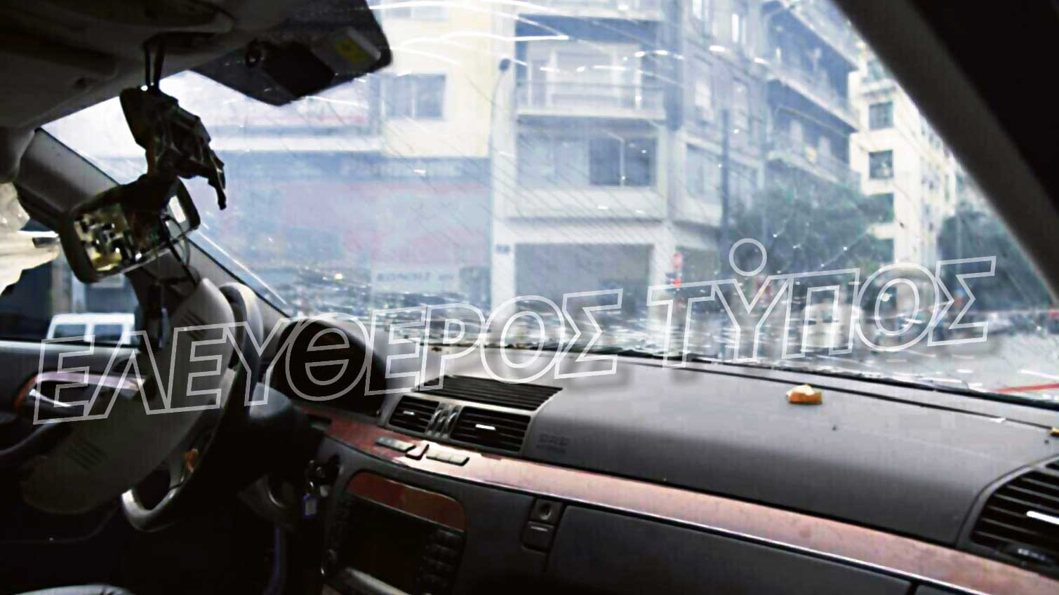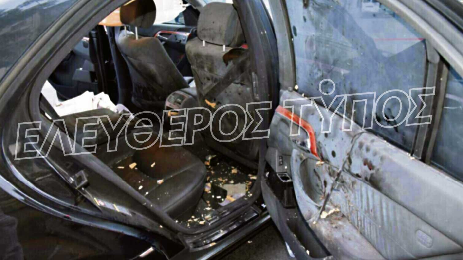Σε άλλη φωτογραφία από το εσωτερικό της Μερσεντές, στο μπροστινό μέρος, όπου κάθονταν οι συνοδοί του, οδηγός και συνοδηγός, φαίνεται το σπασμένο παρμπρίζ, ο διαλυμένος καθρέφτης και κομμάτια του τρομοφακέλου στο καντράν, στο τιμόνι και το κάθισμα του οδηγού.