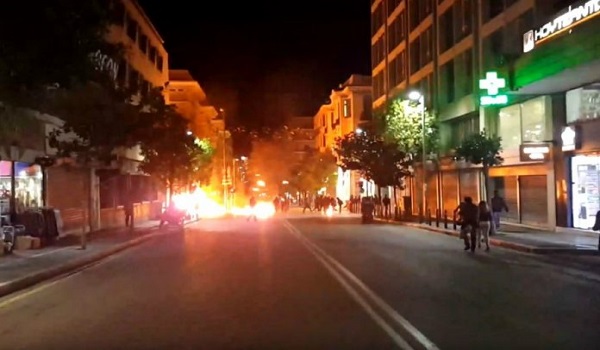 Οι κουκουλοφόροι συμμετείχαν σε πορεία για την επέτειο της εξέγερσης του Πολυτεχνείου, ενώ προηγουμένως έσπασαν παράθυρα αυτοκινήτου της κυνηγετικής ομοσπονδίας, που ήταν σταθμευμένο στην οδό Αγίου Ανδρέου και πέταξαν στο εσωτερικό του βόμβα μολότοφ, με αποτέλεσμα να εκδηλωθεί πυρκαγιά.