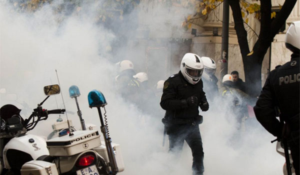 Oι διαδηλωτές επιχείρησαν να διέλθουν από αστυνομικό φραγμό, αλλά αστυνομικοί τους απώθησαν κάνοντας χρήση χειροβομβίδων κρότου λάμψηςΑργότερα, στο ύψος της πλατείας Αρχαίας Αγοράς ομάδα ατόμων πέταξε αντικείμενα εναντίον των αστυνομικών δυνάμεων, ενώ έβαλε φωτιά σε έναν κάδο.
