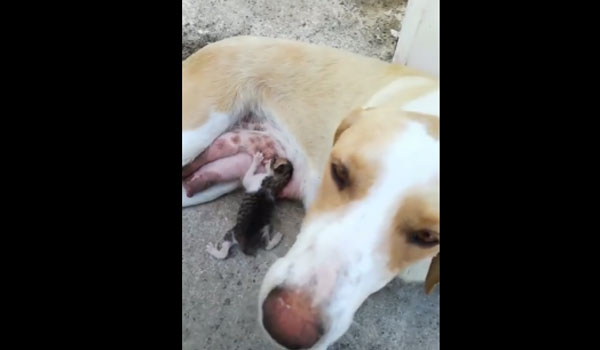 Πέταξαν γατάκι στα σκουπίδια και το υιοθέτησε αδέσποτη σκυλίτσα!