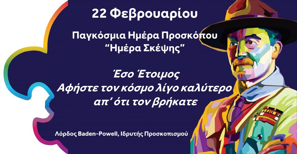 Κάθε χρόνο στις 22 Φεβρουαρίου γιορτάζει η μεγαλύτερη κίνηση για νέους σε όλο τον κόσμο: η Προσκοπική Κίνηση! Περισσότερα από 50.000.000 μέλη σε 220 χώρες σε όλο τον κόσμο γιορτάζουν την ημέρα γέννησης του ιδρυτή της Προσκοπική Κίνησης, Λόρδου Baden-Powell.