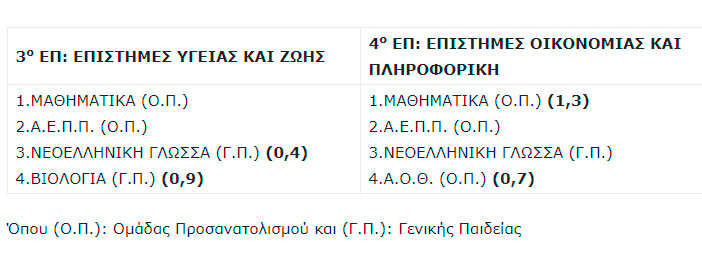 Όπου (Ο.Π.): Ομάδας Προσανατολισμού και (Γ.Π.): Γενικής Παιδείας